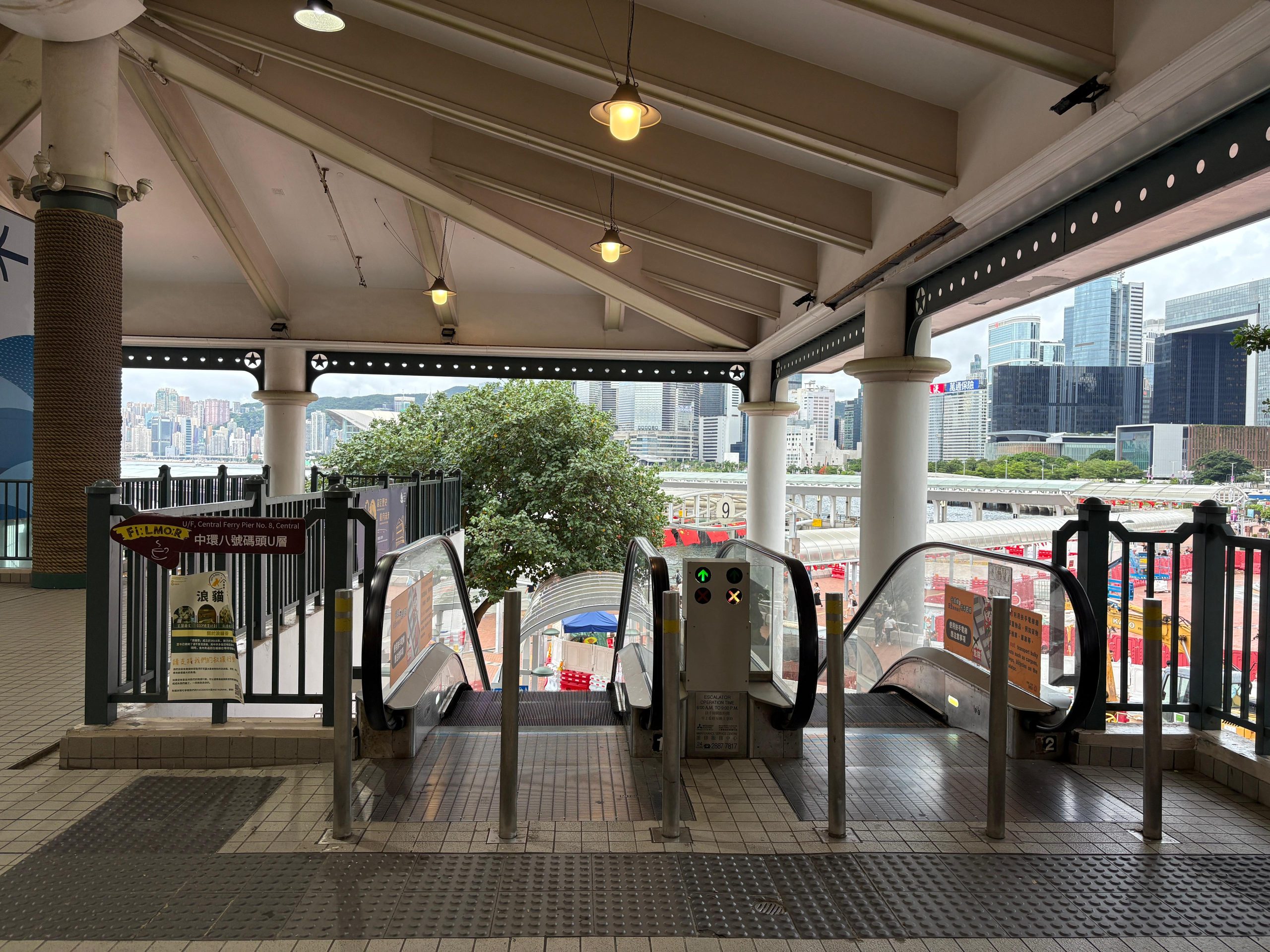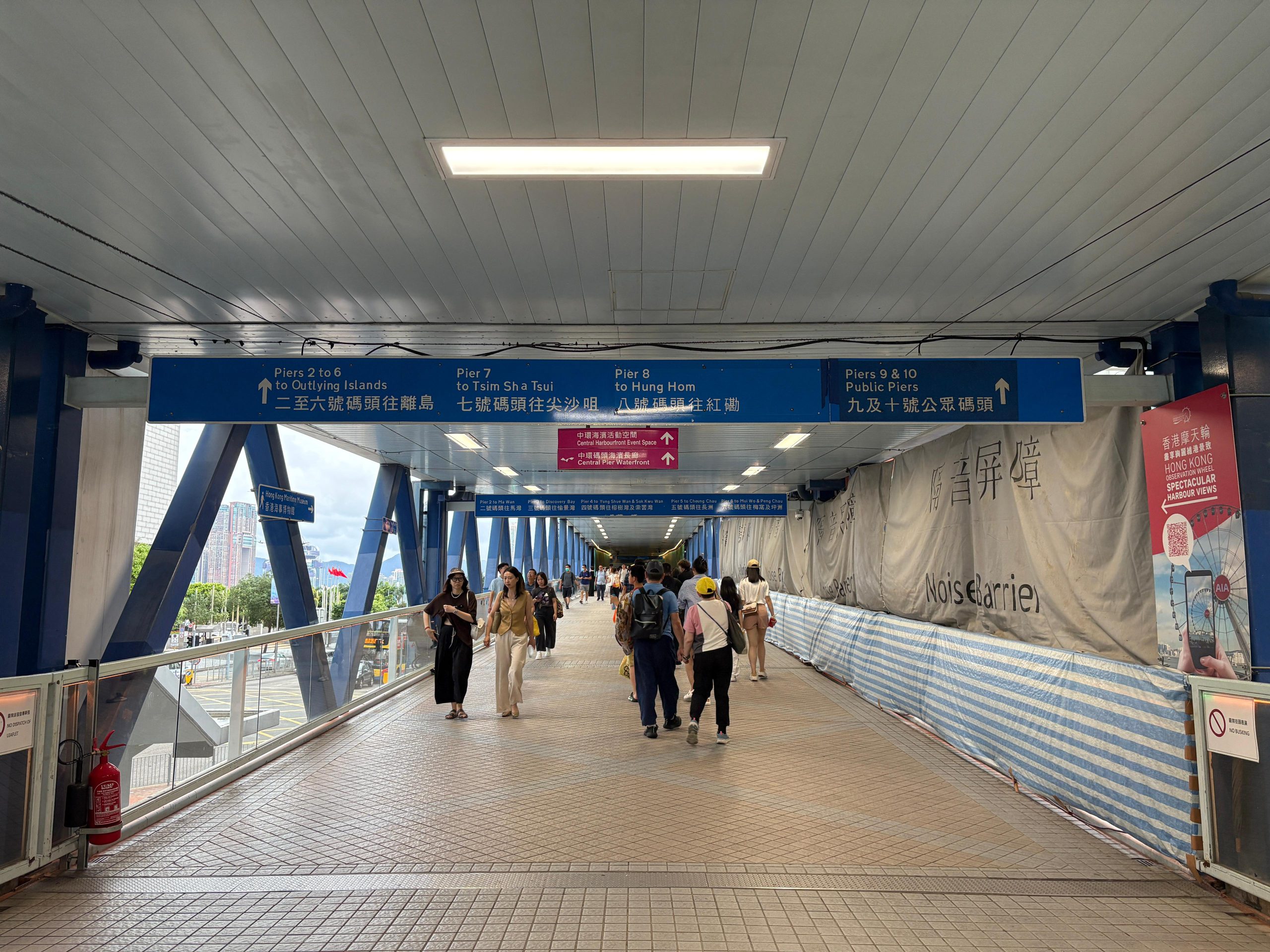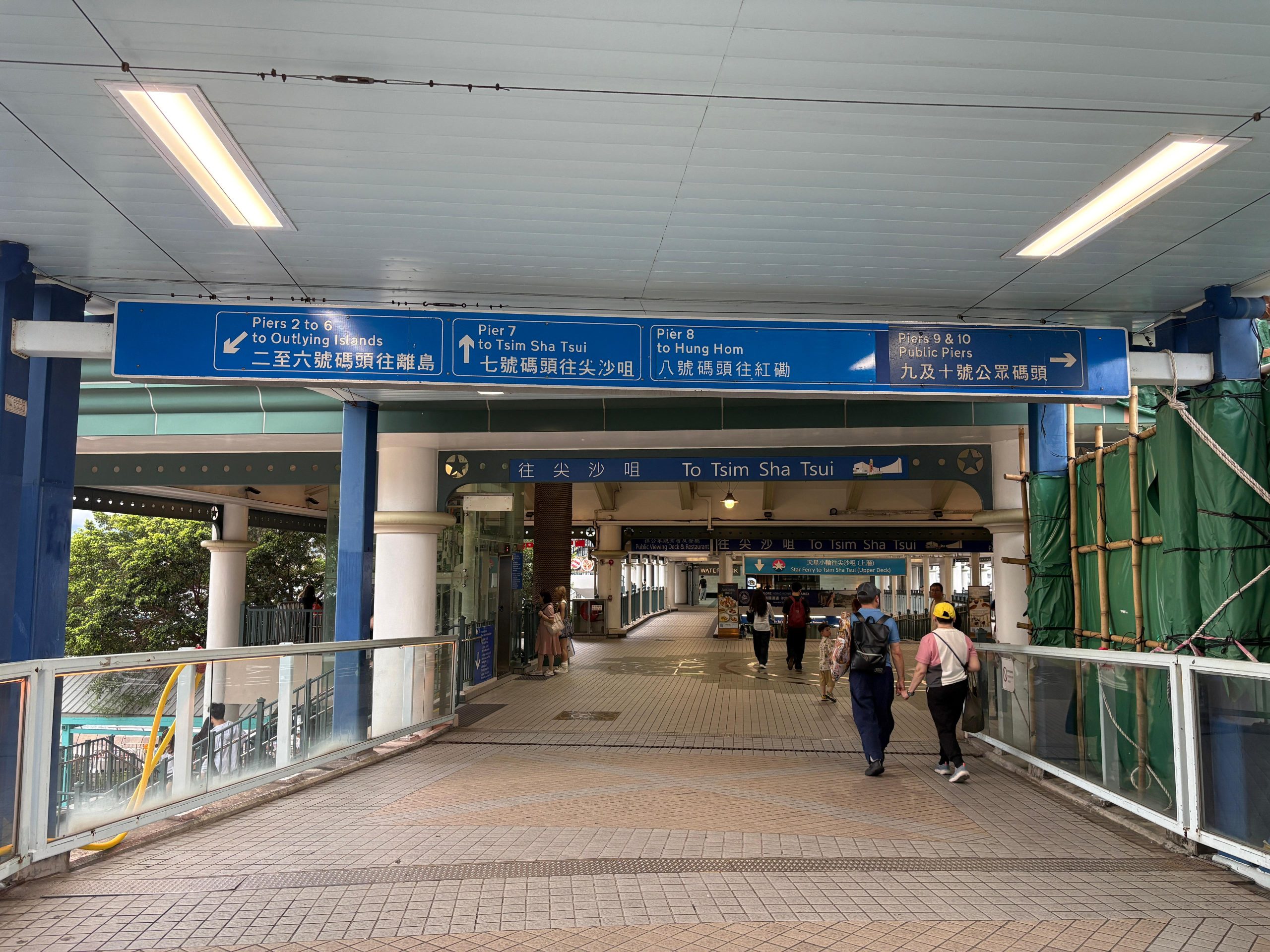 沿着天橋一直直走, 沿途留意去往9號碼頭的指示牌。