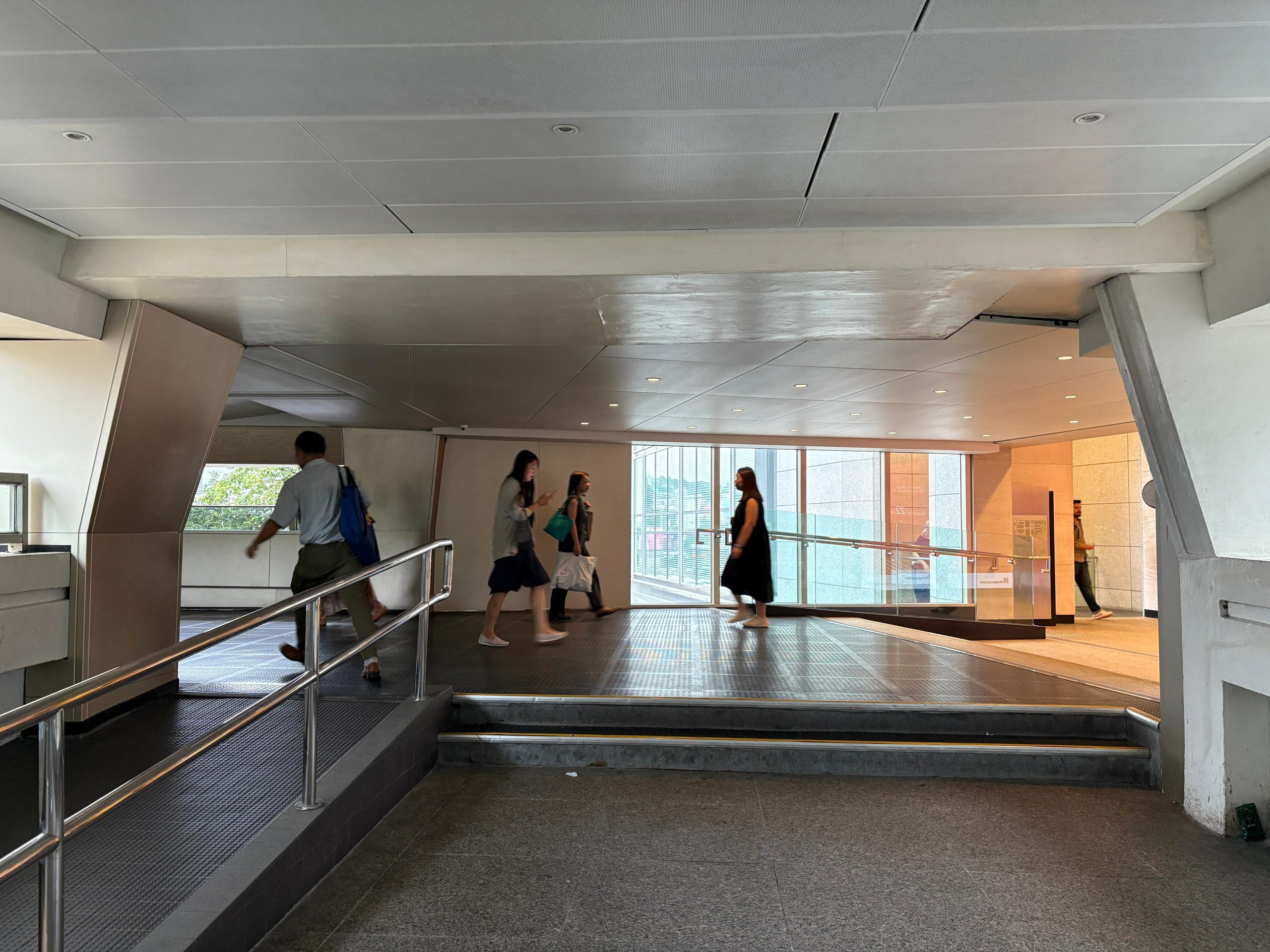 6. After reaching the end, take the escalator down to the ground.